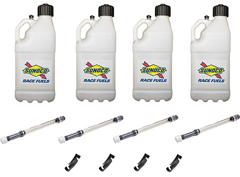 Utility Jug - Motorsports - 5 gal - 9.5 x 9.5 x 23 in tall - O-Ring Seal Cap - Screw-On Vent - Filler Hose / Hose Bender Included - Square - Plastic - Clear - Kit
